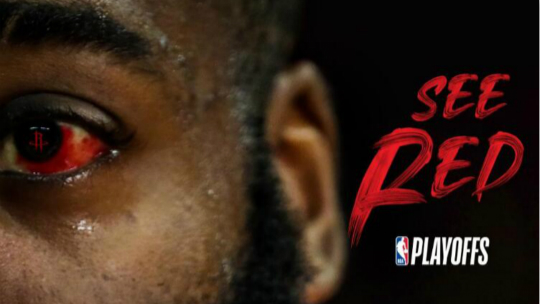 中国体育5月8日讯,火箭官推晒出季后赛“see red(怒)”的主题报道,用的是詹姆斯-哈登充血发红的左眼。