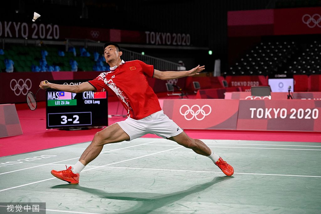 间歇过后,谌龙杀球下网再送李梓嘉1分;李梓嘉越战越勇,谌龙自身失误也有增不减;最后一球,谌龙网前抓住机会扑球,无奈球却出界。第一局后半段,李梓嘉狂轰谌龙10-0,间歇之后谌龙一分未得送出了第一局。