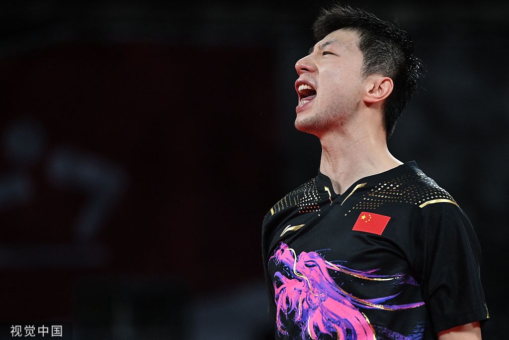 ·马龙取得2019年世乒赛男单冠军后,激动大喊“I am made in China”。图源:新华社