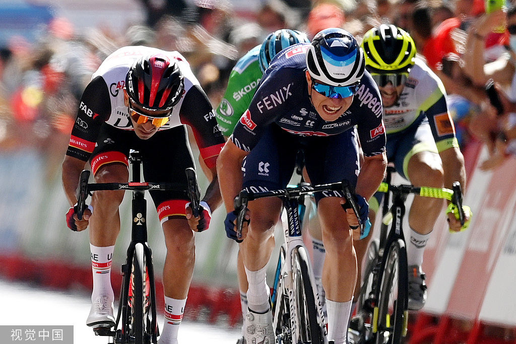 2021第76届环西班牙自行车赛于8月15日进行了第二赛段比赛争夺,最终由欧倍青车队的菲利普森冲刺夺魁,拿下赛段冠军与冲刺王绿衫,雅各布森以一个车轮的微弱劣势不敌菲利普森收获赛段亚军,马修斯赛段季军。罗格利奇继续保有红色领骑衫。
