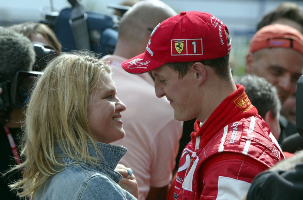 作为赛车圈的著名模范夫妻,舒马赫和科琳娜在1989年相识。彼时,舒马赫是初出茅庐的年轻赛车手,科琳娜则是一名普通售货员。六年爱情长跑,他们在1996年步入婚姻殿堂。1997年,女儿吉娜出生;1999年,儿子米克出生。