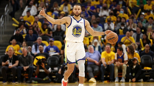中国体育6月6日讯,NBA总决赛G2,勇士主场迎战凯尔特人。第三节比赛末段,库里在弧顶右侧出手命中一记超远三分,勇士将领先优势扩大到17分。