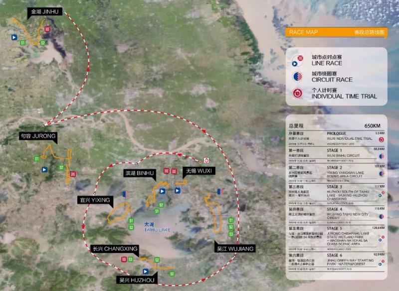 2019第十届环太湖国际公路自行车赛将于10月9日至15日在江、浙两省举行,赛事级别为UCI2.1级,共吸引了来自全球40多个国家和地区的132名顶级运动员组成的22支车队参赛,总奖金40万美元。